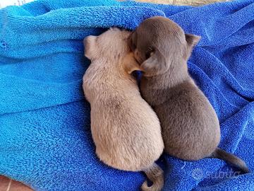disponibili due splendidi maschietti dai colori diluiti ottima morfologia dimensioni molto contenute carattere equilibrato si cedono a 80-90 giorni con doppia vaccinazione ciclo vermifugo libretto sanitario certificato di buona salute microchip e passaggio di proprietà kit puppy. Possibile consegna fuori regione per info contattare 3714362334 Laura.