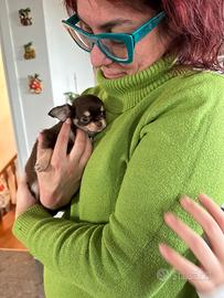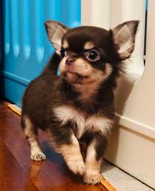 Disponibile alla prenotazione splendido cucciolo maschietto di chihuahua a pelo lungo ...nato il 26 ottobre, sará affidato al compimento dei 90 giorni di vita con libretto sanitario completo di tutte le vaccinazioni, trattamenti per endo e ecto parassiti,microchip e pedigree enci .Ottima genealogia. Astenersi perditempo