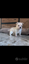 Dolcissimo cucciolo di chihuahua colore crema cerca casa, verrà ceduto a fine svezzamento con vaccini, sverminazione e certificato di buona salute.solo a gente seria e responsabile.genitori entrambi puri massimo 2kg da adulti.mamma a pelo lungo e papà a pelo raso. Venite a conoscerlo di persona