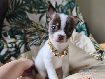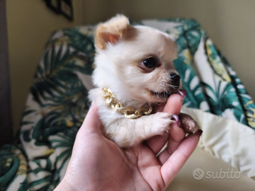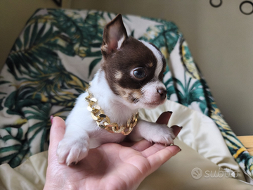 Dolcissimi cuccioli di chihuahua cercano casa, verranno ceduti a fine svezzamento,con vaccini, sverminazione e certificato di buona salute.solo a gente seria e responsabile.genitori entrambi puri massimo 2kg da adulti.mamma a pelo lungo e papà a pelo raso.