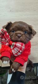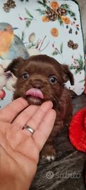 Disponibile da metà aprile Cucciolo di chihuahua pelo lungo Taglia molto piccola Nato da genitori di mia proprietà Si cede solo ad amanti ed intenditori della razza e dello standard Sarà munito di pedigree, di sverminazione, e avviamento a ciclo vaccinale, con libretto sanitario di buona salute No perditempo Possibilità di consegna