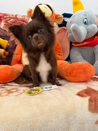 Cucciolona dí chihuahua taglia piccola... Il suo nome è Lulú. Carattere gioioso giocoso e molto molto solare e coccolona! Abituata a fare i bisognini nella traversa. Molto socievole e va d'accordo anche con altri cani e soprattutto gatti. La cagnolina ha tre annetti e pesa 2 kg ( ancora giovanissima quindi gentilmente evitate proposte assurde solo per trattare il prezzo ) in possesso di libretto microchip vaccinazioni e pedigree ENCI! La richiesta è di 500?! NO PERDITEMPO contatti solo ed esclusivamente chi è interessato all'acquisto! Annuncio rivolto solo a persone amanti degli animali no per la riproduzione ma da compagnia!