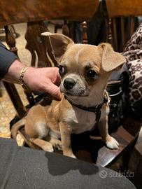 Vendo magnifico cucciolo chihuahua maschio 4 mesi fulvo / bianco con pedigree Enci , gi? svezzato, microcip e tutta la documentazione; molto affettuoso, si attacca al padrone, mangia 50 grammi al giorno di crocchette abituato viaggiare quindi stare macchina, vendo a malincuore ? 900,00, assieme 2 cuccette, guinzaglio e trasportino. Stefano 3356821895