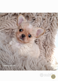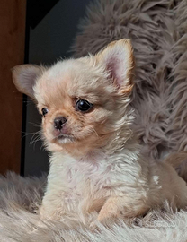 Cucciolo di chihuahua maschio Crema pelo lungo.