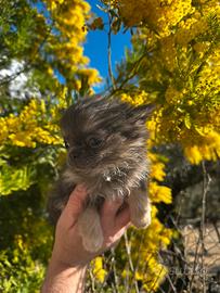 Vendo cucciolo di chihuahua maschio BLUE TAN PELO LUNGO il cucciolo viene ceduto con primo vaccino e doppia sverminazione e libretto sanitario Per info contattare