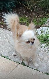 Stalloncino di chihuahua color crema a pelo lungo, 2 anni appena compiuti con ottimo pedigree, ottime linee di sangue! Già padre di numerose cucciolate! Peso 2,500, monta naturalmente! Per altre info contattatemi telefonicamente