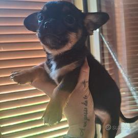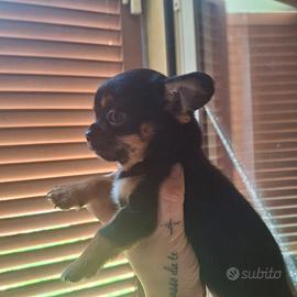 Disponibile chihuahua maschio nero tricolore di 2 mesi,pelo corto,nato in casa,si cede sverminato con primo vaccino e libretto sanitario. Da adulto 3kg. Contattare solo whatsapp 3347413209 Zona Roma la storta