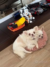 Vendo meravigliosi cuccioli di chihuahua maschi di colore bianco, pelo lungo nati il 15 ottobre, verranno ceduti già svezzati, sverminati, microchip primo vaccino e con pedigree .