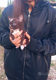 Minuscolo cucciolotto di chihuahua (mini mini toy) maschietto di due mesi color cioccolato testolina a mela e carattere super socevole...Si cede gia munito di librettino sanitario internazionale,vaccino ,sverminazione,e trattamento antiparassitario...disponibile alla visione ( peso previsto d' adulto 1kg.) Info.3349641710...bulldog,barboncino,bassotto,shitzu,maltipoo