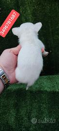 Stupendo Cucciolotto di razza CHIHUAHUA con mantello bianco. Verrà consegnato a 60 giorni di età munito di doppia sverminazione, inizio profilassi vaccinale, trattamento cutaneo antiparassitario, certificato sanitario di stato di buona salute e microchip con relativa registrazione all' Anagrafe Canina Nazionale.