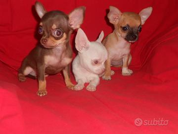 Cuccioli chihuahua, maschi e femmine, da subito disponibili, nati in ambiente famigliare , vengono rilasciati con più di 80 giorni ,con vaccino, svermati e microchip, si specifica mamma senza pedigree, visibili senza impegni. Per qualsiasi informazione telefonare 3715311939 si garantisce assistenza anche dopo l'acquisto .non si risponde a messaggi