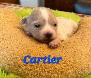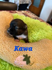 dispone di splendidi cuccioli di chihuahua piccolissimi 4 maschi e 2 femmine colore Chocolate, si cedono al compimento dei 60 gg, con 3 sverminazioni, vaccino, microchip passaggio di proprietà ,visita veterinaria..