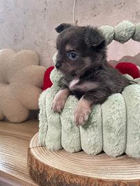 Bellissima femmina chihuahua di 60 giorni pelo lungo colorazione blu fawn molto dolce e giocherellona la cucciola viene ceduta con i seguenti requisiti.