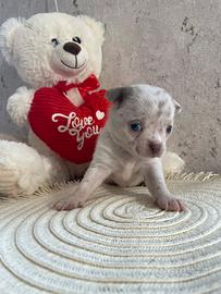Disponibile bellissimo esemplare di chihuahua toy maschio a pelo raso colorazione rara e introvabile Lilac merle occhi chiari di due mesi