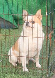 Disponibile per monta bellissimo esemplare di chihuahua Toy con pedigree ENCI colore bianco arancio molto iper tipico, musetto corto e testa a mela.