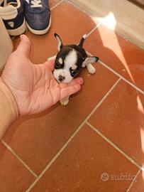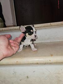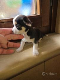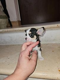 Disponibile in Allevamento cucciolo di chihuahua tricolore nero/bianco/crema che si consegna a due mesi, a febbraio. Consegna effettuata di PERSONA in tutta ITALIA. Il cucciolo avrà: Doppia sverminazione, primo vaccino e secondo vaccino, libretto sanitario e visita veterinaria, trattamento antiparassitario, microchip con relativo passaggio di proprietà, pedigree Enci, sarà abituato all'uso della traversina igienica e socializzato con altri cani e gatti. Per info e video anche whatapp al 329 6954062 Allevamento Cucciolisole