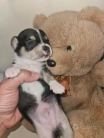 Disponibile in allevamento Piccoli Cuccioli bellissimo chihuahua tricolore a pelo corto che si consegna a due mesi, a febbraio completo di doppia sverminazione, primo vaccino, libretto sanitario e visita veterinaria, microchip con relativo passaggio di proprietà, trattamento antiparassitario, pedigree Enci.
