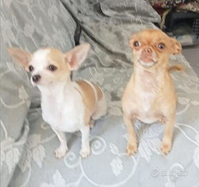 Disponibili due bellissimi e giocherelloni cuccioli di chihuahua toy un maschietto e una femminuccia , sverminati e mangiano già da soli abituati alla traversina .
