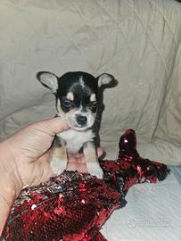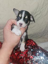 Disponibile in Allevamento cucciolo di chihuahua tricolore nero/bianco/crema che si consegna adue mesi, a febbraio. Consegna effettuata di PERSONA in tutta ITALIA.