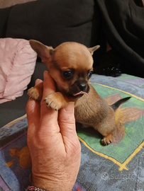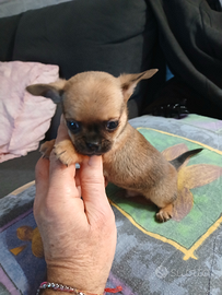 Chihuahua toy taglia piccola da adulto un kilo e otto di due mesi di vita Svezzato e sverminato Si cede con vaccino e libretto sanitario Abituato alla traversina Solo persone amanti animali No perditempo No affaristi ....