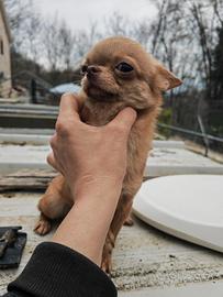 Chihuahua femminuccia pelo corto cucciolone di un anno e tre mesi con pedigree enci e tutti i vaccini sverminata perfetta salute, carattere meraviglioso va subito d accordo con tutti, abituata a sporcare fuori, colore isabella pesa solo un kilo , prezzo 700, intera e non adatta alla riproduzione perché troppo piccola siamo nel Lazio possibilità di consegna in tutta italia tel. 3405282515