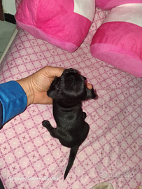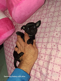 Chihuahua Toy femmina mini di 2 mesi, Total black, abituata alla traversina.. Molto dolce e affettuosa.. La cedo svezzata e Sverminata.. Da adulta max 2 kg. Solo amanti della razza.. No affaristi.. Whatsapp 3510843943