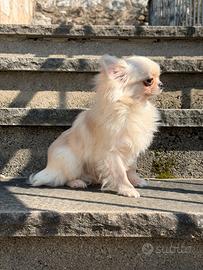 Bellissimo maschetto chihuahua a pelo lungo. Nato a settembre 2025. Disponibile da subito sverminato, vaccinato con microchip e pedigree Enci. DNA di genitori depositato. Genitori visibili e di mia proprietà
