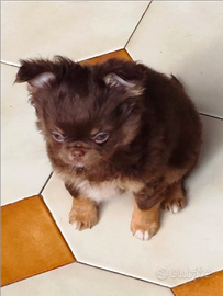 Stupendo cucciolo di chihuahua tri colore cioccolato pelo lungo nato il 10/11/2025 Si consegna con la prima vaccinazione microchip e pedigree FCI ENCI Pe tutte le informazioni contattatemi al 3471157524