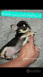 Disponibile in Allevamento cucciolo di chihuahua tricolore nero/bianco/crema che si consegna a due mesi, a febbraio. Consegna effettuata di PERSONA in tutta ITALIA.