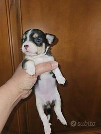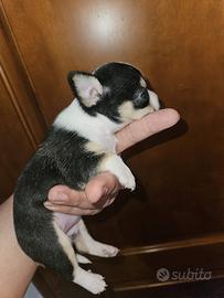 Disponibile alla prenotazione bellissima cucciola di chihuahua nano tricolore a pelo corto. La piccola verrà ceduta al compimento dei due mesi con doppia sverminazione, primo e secondo vaccino, libretto sanitario e visita veterinaria, abituata al telo igienico, trattamento antiparassitario, microchip con relativo passaggio di proprietà all'ASL veterinaria e PEDIGREE ENCI. Sarà socializzata con altri cani e gatti e crescerà in ambiente familiare giocando con bambini. NON È ASSOLUTAMENTE IN REGALO ALLEVAMENTO CUCCIOLISOLE anche whatsapp al 329 6954062