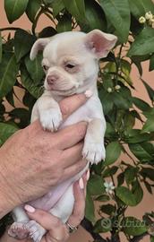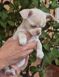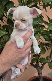 Ultimo cucciolo di chihuahua maschietto nato il 3 di febbraio e pronto per i nuovi genitori dopo il 13 aprile. Il cucciolo viene consegnato con microcip libretto sanitario 3 sveminazioni e con eventualmente il suo pedigree. È di colore bianco con occhi azzurri un bel cucciolo ottimo da riproduzione e soprattutto da compagnia molto coccolone portatore di colori particolari dato che i genitori di mia proprietà sono Blu il papà e lilac la mamma. Per ulteriori informazioni contattatemi pure mi trovo a Rovereto in provincia di Tn Massimo