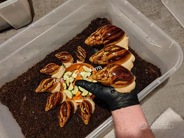 disponibili con spedizione in tutta Italia (con meteo adeguato) ultimi 5 esemplari di Archachatina marginata ovum acromelanic body, 1 di circa 9cm di guscio e 4 di circa 7/8cm (non consanguinee alla prima)