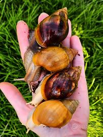 Giovani chiocciole giganti africane (Lissachatina fulica) in allevamento. Diversi morph disponibili. Spedizioni in tutta italia.