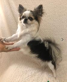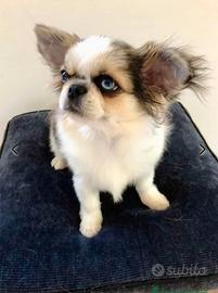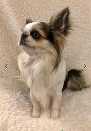Mi chiamo Prince Charmant, sono un bellissimo chihuahua a pelo lungo tricolore di piccola taglia con pedigree. Sono nato il 04.11.2023, mi hanno chiamato principe azzurro perché ho un occhio nero e un occhio azzurro, disponibile per accoppiamento.
