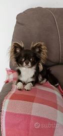 A malincuore ci troviamo a dover dare via la nostra piccola chiwawa di 2 anni di nome ledy per problemi personali famigliari la piccola pesa 1.8 a pelo lungo color cioccolato e bianco e sana e in salute molto buona in casa abituata alla traversina igienica. Ama le coccole baci e stare in braccio socializza con tutti persone cani e bambini non abbaia mai vive in appartamento tranquillamente e molto dolce vaccinata con il suo libretto la cagnolina non e castrata la diamo via a un rimborso spese di 250 euro noi l abbiamo pagata 700 qndo aveva 6 mesi per favore solo persone che amano gli animali e veramente interessati andrà solo a chi ci ispira fiducia lei e veramente buona e dolce e piccola no perditempo grazie
