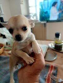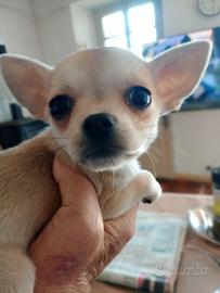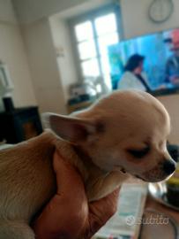 Cuccioli di chihuahua toy pelo corto, di quasi 3 mesi, 1 maschio e 2 femmine. Vaccinati, microchip e sverminati. Genitori visibili, padre bianco e arancio 1,6kg Madre fulvo 1,8kg Solo contatti telefonico/ whatsapp 3393863597 Edo