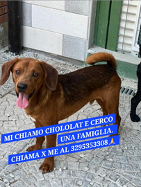 Chocolat è un dolcissimo cagnolino di appena un anno e mezzo, equilibrato, affettuoso,socievole e molto buono.Chocolat pesa 13 chili è sano ,vaccinato, microchippato e castrato. Chocolat cerca una famiglia ,una mamma d'amare ,una cuccetta morbida e tanto affetto. Per ulteriori informazioni e foto chiamate il 3295353308.grazie.