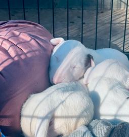 Disponibili cuccioli di bull terrier standard da genitori completamente testati di nostra proprietà e visibili in allevamento.Verranno ceduti dopo i 65 gg di età con pedigree Enci libretto sanitario certificato veterinario .Consegniamo personalmente in tutta Italia .