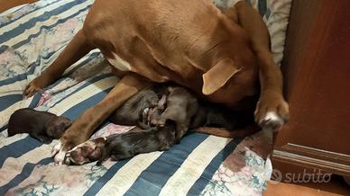 Bellissimi cuccioli di rednose vi aspettano fra 2 mesi per far parte della vostra famiglia. Nati ieri , sono 8 e tutti spettacolari. Nelle foto vedrete mamma e papa' e loro, piccolissimi sotto la mamma. Solo per amanti dei cani! Li vendero' sverminati... affrettatevi per venire a sceglierlo e prenotarselo al raggiungimento dello svezzamento