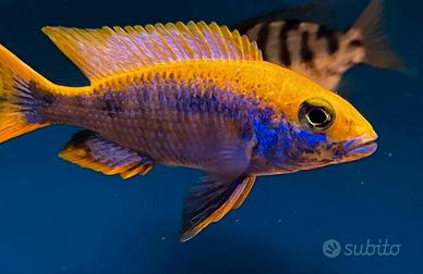 Vendo SPLENDIDI esemplari Otopharynx Lithobates Sulphur Head , pesce ciclide d'acqua dolce tropicale originale del lago africano Malawi, riprodotti nei miei acquari.
