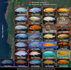 Ho disponibili 5 esemplari di circa 5/6 cm di Metriaclima/Maylandia estherae minos reef ob. Prezzo trattabile per acquisto multiplo