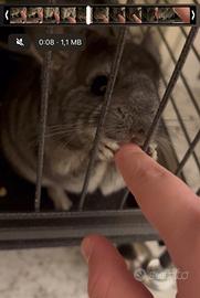 Vendo cucciola di cincila femmina di 3 mesi. Dolce,affettuosa. Se interessati vendo con mangime,fieno,sabbia,gabbia nuova e trasportino (prezzo per accessori trattabile). Vendo a malincuore per cambio casa