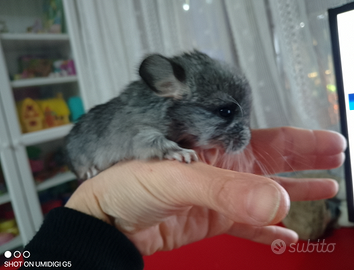 Vendo cincillà maschio di tre settimane, abituato giornalmente al essere manipolato e coccolato quindi molto affettuoso. Manto grigio, genitori visibili. Si cede appena sarà completamente svezzato e si assicura manipolazione giornaliera fino a quel momento, ho due bambine che se ne occupano :) con tanta cura. Possibilità di venirlo a vedere di persona, abitiamo a Cavarzere.