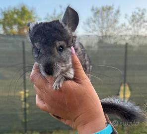 Cincillà maschio, nato il 12/02/2026, colorazione Light Ebony, in ottime condizioni di salute, molto dolce è abituata al contatto umano.