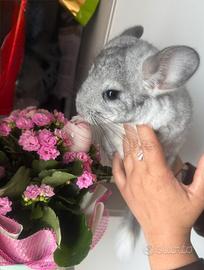 Cincillà femmina, nata il 07/01/2026, colorazione Mosaico, in ottime condizioni di salute, molto dolce è abituata al contatto umano.