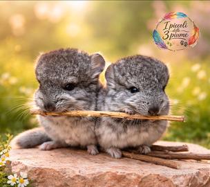 Allevamento amatoriale I Piccoli delle 3 Piume a Broni Pavia cede 2 fratellini nati il 27/12/25 cincillà royal persian carrier angora/black pearl, papà angora e mamma black pearl. Sono socievoli e abituati al contatto umano e saranno disponibili da metà marzo, possibilità di trasporto con mezzo autorizzato a carico del destinatario; assistenza pre e post cessione. ?. 95 CD. in coppia ?. 180 Per informazioni contattare SOLO telefonicamente o whatsapp; per una forma di rispetto reciproco NON risponderemo ad anonimi. Grazie
