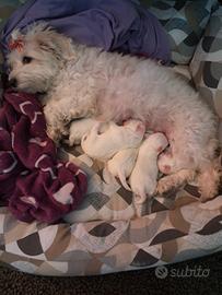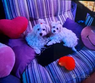 Vendo cinque splendidi cuccioli di maltesi toy (3 femminucce e 2 maschietti) nati il 25 febbraio 2026 dai miei maltesi Tonino e Sissi' che vivono in casa con noi quindi visibili (peso intorno ai 4 kg).Allego la terza foto che sono i genitori e le ultime due foto sono i fratellini della cucciolata precedente ,come vedete la mia Sissi mi fa sempre un pai di cuccioli con gli occhi turchesi e il dottore dice che dipende da una variante genetica rarissima.Abbiamo avuto altre cucciolate e sappiamo crescere e gestire la cosa al meglio.Verranno consegnati a due mesi di vita sverminati e svezzati già autosufficienti quindi il 25 aprile.se volete vederli come saranno alla consegna mandatemi il vostro numero che vi faccio vedere foto e video dei fratellini dell'ultima cucciolata con what up oppure se volete altre informazioni allego il mio cellulare. 3382097699 io sono Tiziana.Man mano che cresceranno aggiornerò le foto sull'annuncio.Comunque potete venirli a vedere quando volete. Il prezzo è 500€