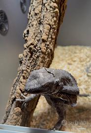 Disponibile Clamidosauro (Chlamydosaurus kingii) maschio, nato in cattività, età 1 anno e mezzo. Animale in ottima salute, attivo e ben alimentato. Allevato correttamente con: o Alimentazione varia (insetti spolverati con calcio e vitamine) o UVB adeguati e spot basking o Corretta integrazione e gestione ambientale o Abituato alla presenza umana ? Esemplare ideale per appassionati con esperienza in sauri arboricoli. Specie spettacolare e molto affascinante, con collare ben sviluppato. ? CITES: non richiesto (specie non in Allegato A/B - verificare normativa locale). ? Possibile consegna a mano in zona / spedizione specializzata (da valutare). ? Per info, foto e video contattami in privato. Solo realmente interessati.