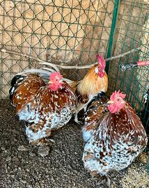 Possibilità di fare coppie di qualsiasi età, possibilità di maschi singoli a buon prezzo perché ne ho molti in più, possibilità di qualche femmina singola (a prezzo superiore perché in minor numero), tutti allevati a terra con ottimi prodotti, ottima razza sia per la cova visto che sono ottime chiocce, ottime anche per la quantità di uova che depongono e soprattutto animali molto docili e facili da gestire, le foto sono veritiere e fatte da me tutte in pollaio, soggetti quindi ben visibili senza aggiungere altre foto, i prezzi saranno rilasciati solo alle persone interessate e prima deve essere specificato il tipo di età e di soggetti che si vogliono acquistare per non confonderci, grazie e buon proseguimento.