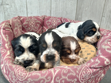 Disponibili A PRENOTAZIONE cuccioli di Cocker Spaniel maschi, nelle colorazioni bianco-nero, tricolore e tricolore cioccolato.
